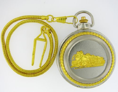 Pocket Watch - Etched Gold & Silver -Tone Train Locomotive Pocket Watch with 14" Clip on Chain Review